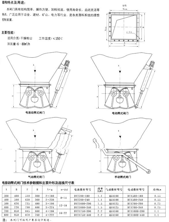 又稱腭式閥、鄂式閥、腭式卸料閥、電液動腭式閘門、電動腭式閘門、弧形閥、腭式卸灰閥等。腭式閘門由本體、扇形閘板、軸、齒輪、密封件、執(zhí)行機構(gòu)等部件構(gòu)成。腭式閘閥采用碳鋼焊接成形,結(jié)構(gòu)_,運行靈活可靠,無卡阻現(xiàn)象。
